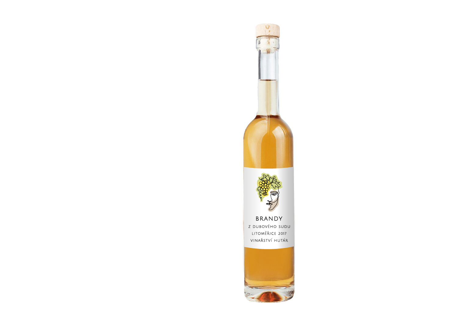 Brandy – vinný destilát, 2017. Složení: vinný destilát, voda. Č. šarže: 11/19. Destilováno v: Ing. Vratislav Novák, Nábřežní 11, 439 21 Koštice nad Ohří. Prodejce: Hutár a.s., 130 00 Praha 3, Česká republika. Nevratný obal. 0,375 l; alk.: 42 % obj.